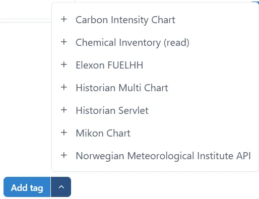 The ‘Add tag’ button is used when tags to be added to a chart come from a historian data source.